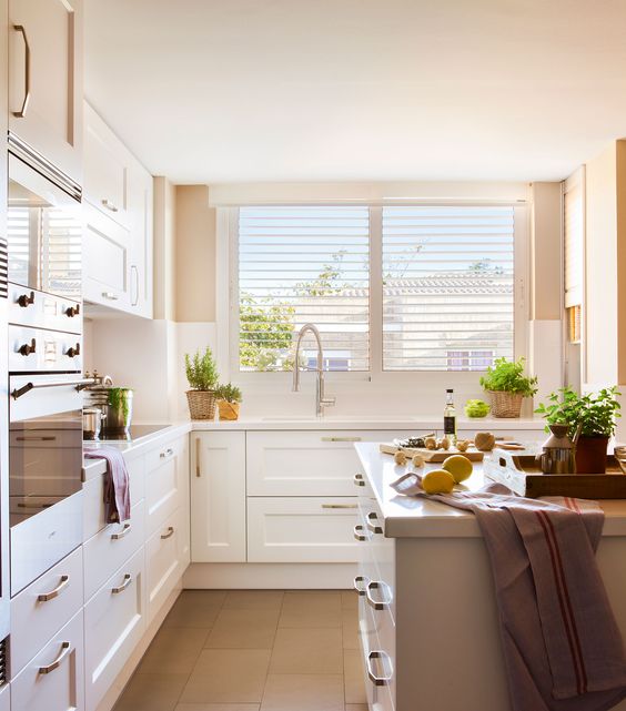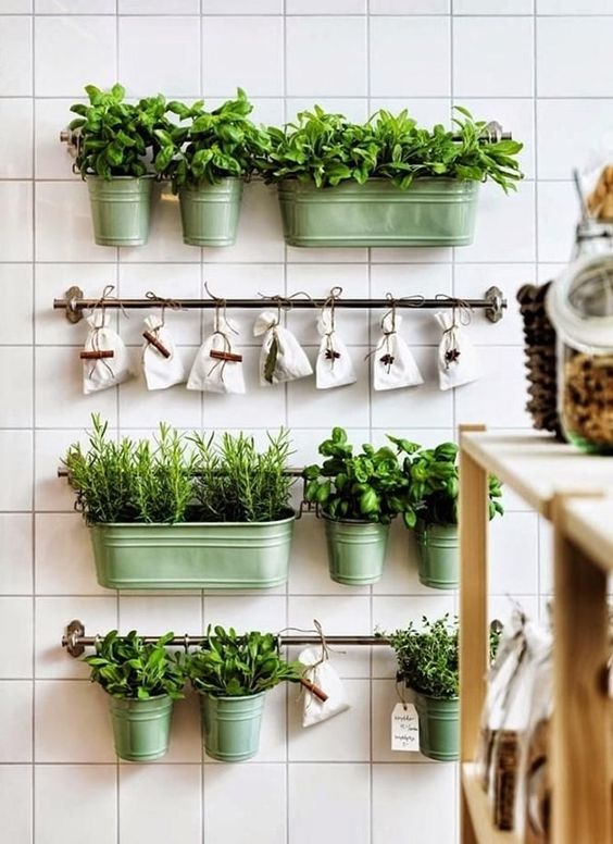 Esta idea es maravillosa para tener bien ubicadas las plantas aromáticas. En la cocina, búscale cualquier rincón libre y mira que práctico y bonito queda ese rincón. Es una genial idea con tan solo unas barras y unos maceteros iguales mezclando tamaños tendrás otro rincón perfecto.