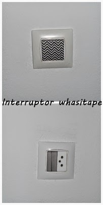 Blanco total, en la pared como decoración tiras de washitape de dos formas diferentes y 3 lineas en la esquina que destacara.