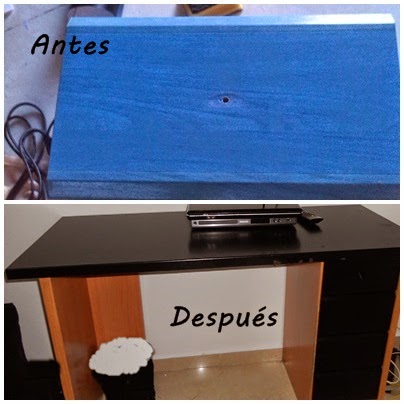 El toque final para dejarlo todo en los mismos colores fue la mesa de escritorio que era azul y opte por forrarla con aeronfix negro y así quedo perfecta!!