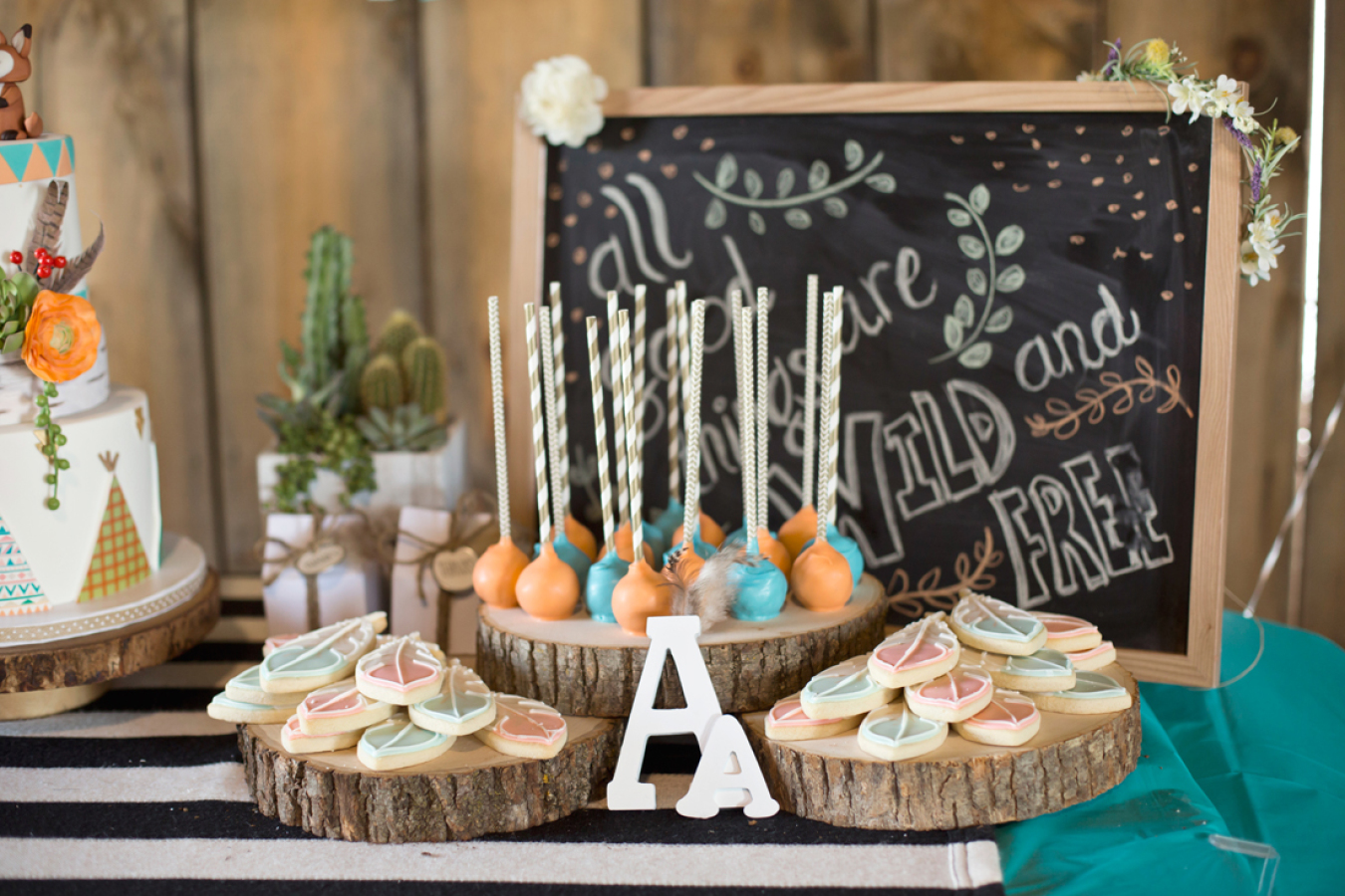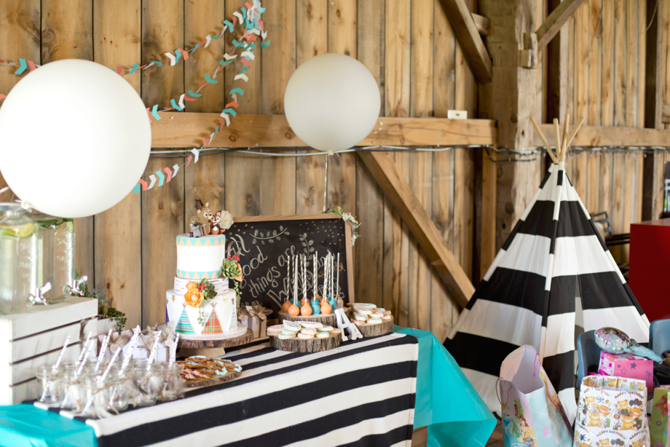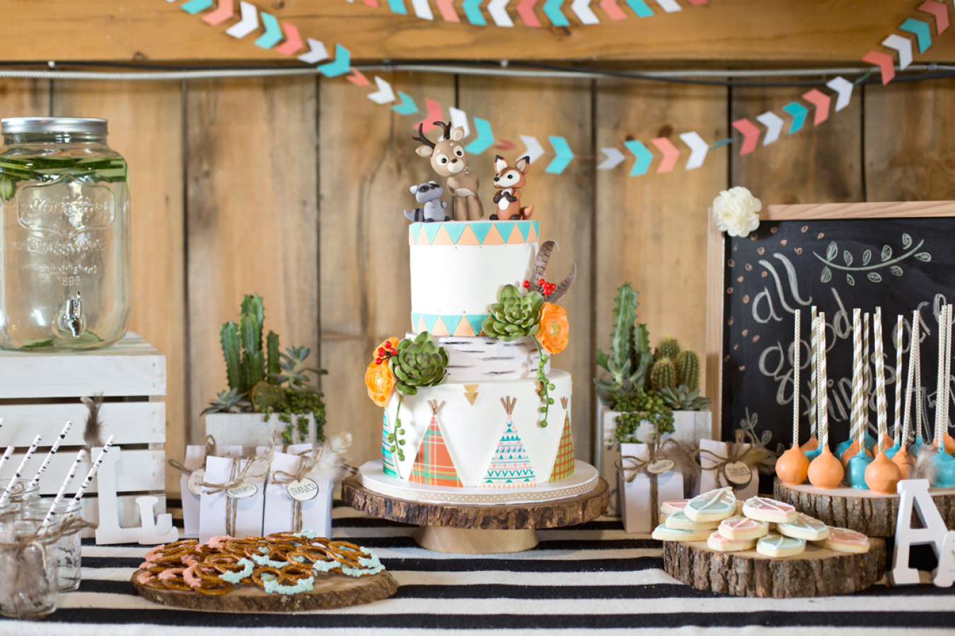 La mesa dulce fue la protagonista con su parte para zumos y galletas decoradas, que junto con un tipi para que los niños jugasen. Echándole un poco de imaginación es como si estuvieran de acampada.