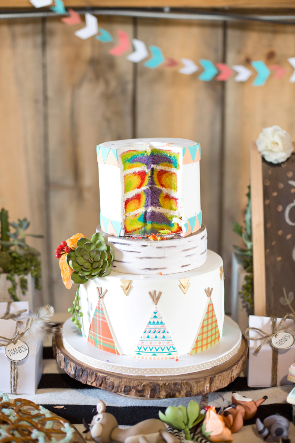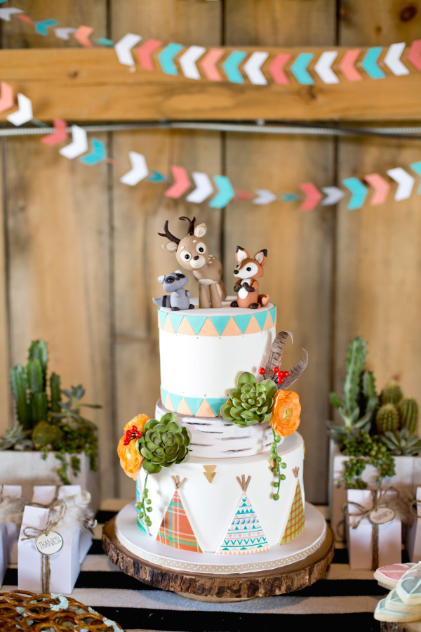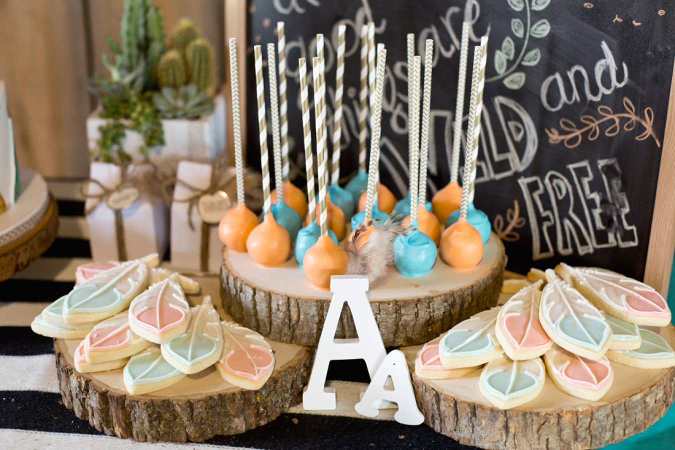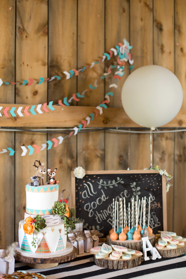 La mesa dulce fue la protagonista con su parte para zumos y galletas decoradas, que junto con un tipi para que los niños jugasen. Echándole un poco de imaginación es como si estuvieran de acampada.