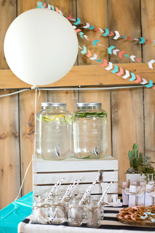 No faltaron las plumas, cactus y suculentas para dar el acento rural, y unas cajitas con unos regalitos para los pequeños invitados decoradas con plumas.