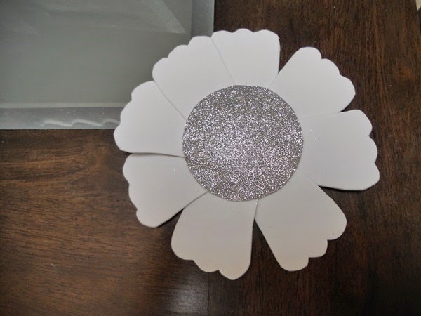 Cortar un pétalo de la forma que queramos en folio y calcar en la goma eva, los mios sin dibujados por mi, pero podéis encontrar por google varios modelos que os gusten.
