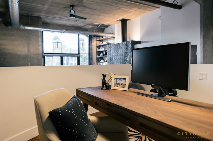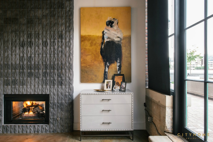 Los loft son espacios abiertos, y aquí han conseguido la perfecta unión entre salón y cocina teniendo una isla y una barra para conseguir cenas informales. El salón lo presido una gran chimenea doble revestida tanto por el salón como por el dormitorio, nada recargado pero con piezas clave como sus lamparas de las mesillas colgadas del techo. Y es que todo tiene un aire gótico porque está muy bien utilizado el negro aprovechando que tienen mucha luz natural por todos los rincones. Y os tengo que hablar del baño que es ¡UNA PASADA! Si si increíble, porque tiene un toque de glamour pero a la vez industrial, con esa gran lampara de araña que me ha creado la necesidad de poner una en mi baño, y sus paredes de loza imitando a la madera junto a la bañera esmaltada en negro. Una combinación arriesgada pero sin dudarlo a sido ganadora.