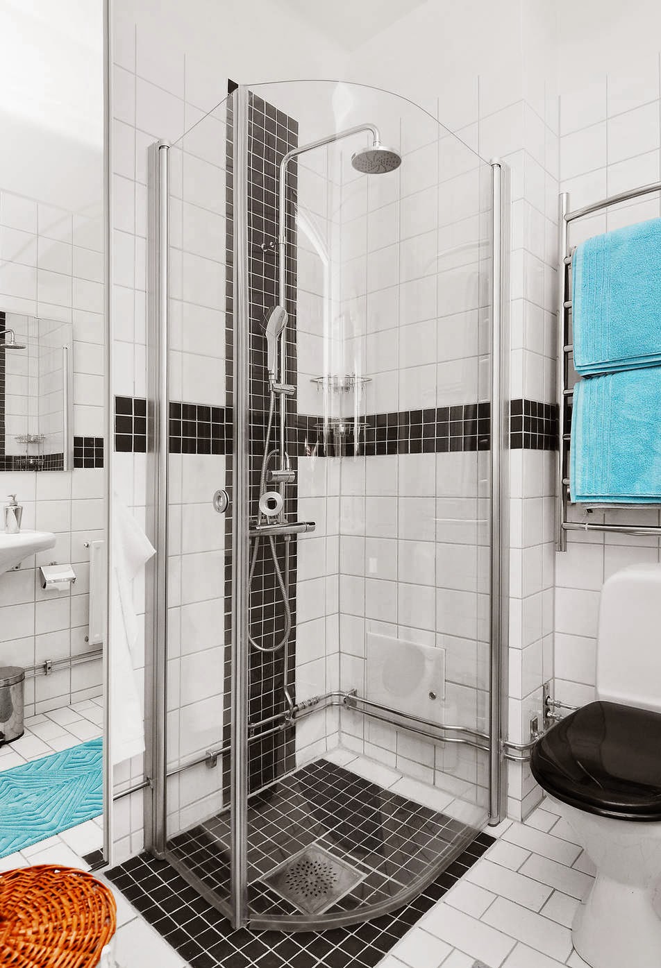 Punto a favor, el alicatado del baño, la combinación blanco y negro siempre ganadora.