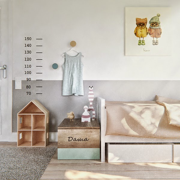 *Destacando un tips que os recomendé en un post de hace unas semana (lo podéis ver aquí) ,pintar el techo de la habitación infantil ha sido una idea muy acertada aprovechando que el techo es bastante algo, que gana mucho en amplitud.