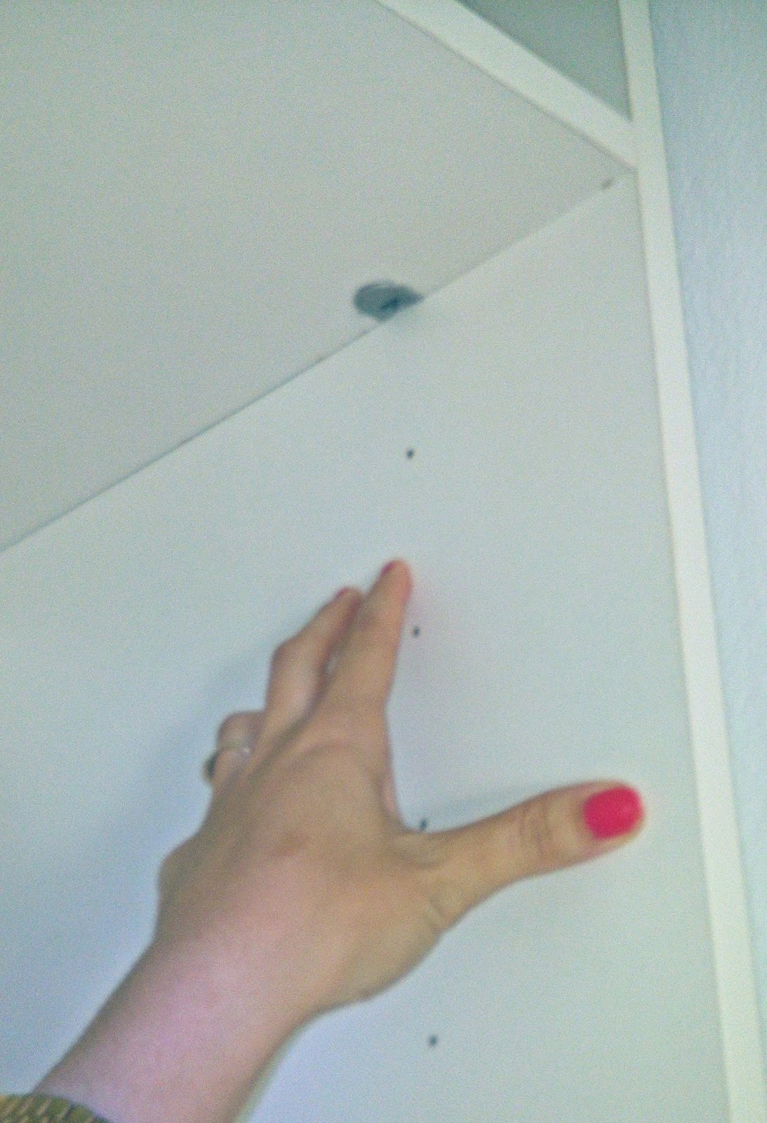 Como ves estos modulares vienen perforados y nos facilita mucho a la hora de la colocación de las baldas. Yo he querido baldas haciendo la zona de altillo. (Perdón por mis uñas jiji)