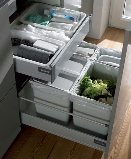- Cubos de residuos: cada día estamos más concienciados de lo importante que es el reciclaje, por eso es muy cómoda tener un armario con diferentes cubos para que nos haga más fácil la distribución de la basura que desechamos.