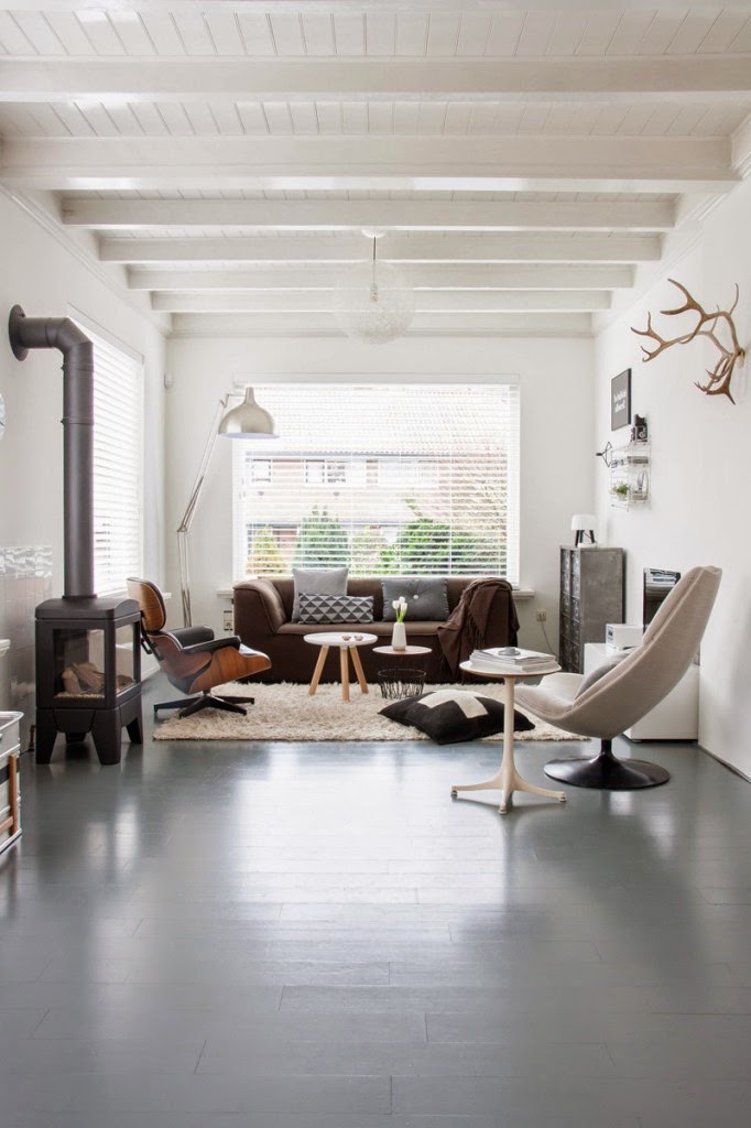 Pues hoy te muestro su casa, donde queda claramente reflejado el estilo nórdico con toques industriales en la decoración, vigas en los techos, paredes blancas con suelos oscuros y totalmente desnudas con pocos artículos de decoración. Si quieres ver uno