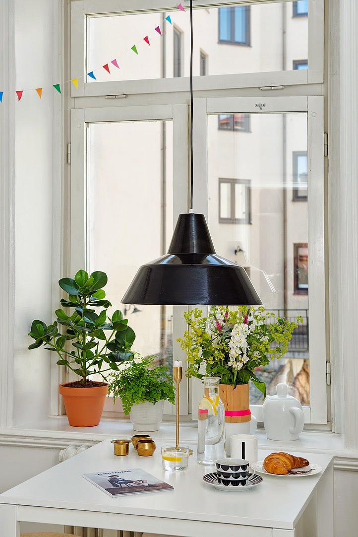 ¡Buenos días! Llegó el viernes, perdonar por no poder publicar el miércoles pero las tecnologías se pusieron en mi contra y me fallo el Pc y el portátil. Pero ya he conseguido arreglarlo y es que en la cacharritos estos no manda nadie. Hoy vuelvo con un miniapartamento de 68 m2. De un dormitorio, un baño, cocina y salón-comedor y una coqueta terracita. Una mezcla de estilos minimalista, ecléctico y nórdico. Las características más destacadas de este apartamento, paredes blancas, suelo de madera de haya, decoración a todo color con algunas piezas de diseño, lamparas de estilo industrial y un baño con tuberías a la vista. Pero todo organizado!