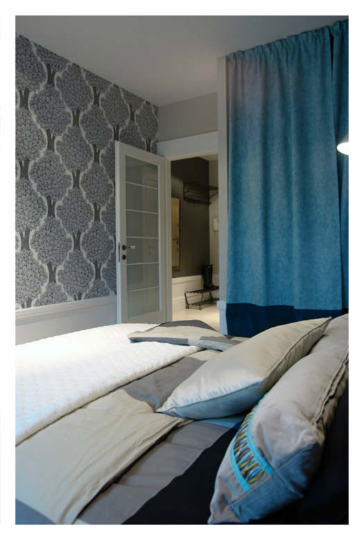 Los colores no pueden ser más acertado el gris con la decoración en turquesa y blanco consiguen ese aire juvenil. Además de tener unos murales en los que invitan a perderse en la imagen. Clásico pero a la vez moderno y es que la mezcla de estilo es totalmente compatible cuando va en su justa medida. Decoración a la ultima añadiendo papel pintado, murales, objetos de diseño, hasta baldosas hidráulicas en el suelo del baño, si se puede decir que lo tiene todo