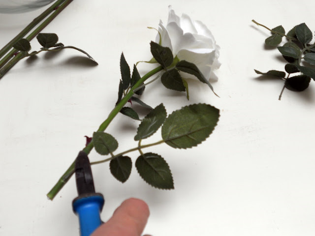 2* Cortaremos las flores a una altura del jarrón y además quitaremos las hojas sobrantes para más adelante utilizarlas.