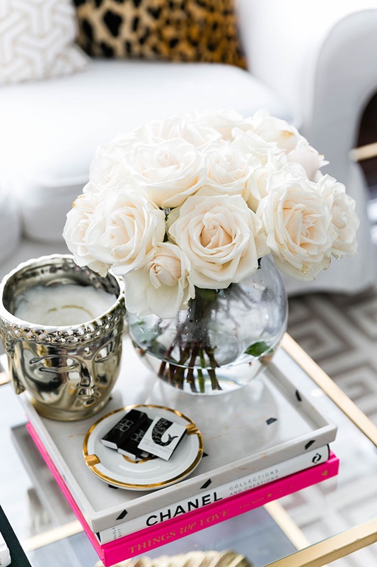Muebles espejados, cristal, brillos, accesorios muy prettys, lampara de araña, animal print tanto en alfombras como tapicería y flores se creará una perfecta combinación.