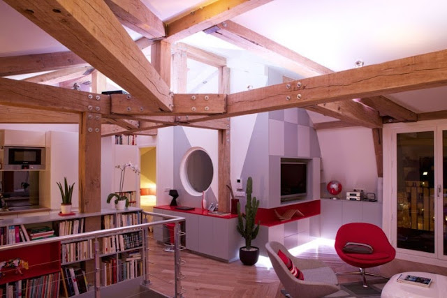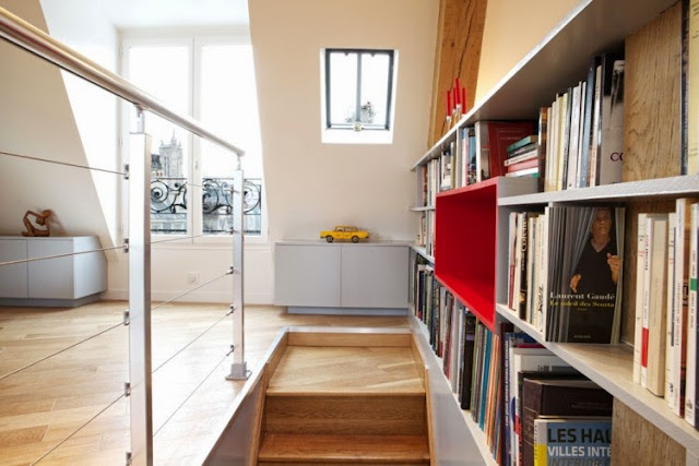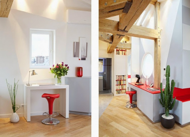 Al reformar este loft, que fue dañado por un incendio en París, querían algo nuevo, ambicioso y creativo. Aprovechando y sacando partido a cada milímetro, consiguiendo así una gran luminosidad y una buenísima distribución a la vez que destacan la sencillez y la ligereza.